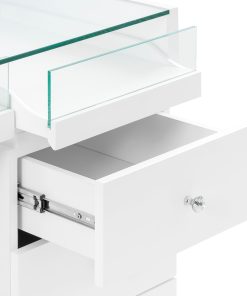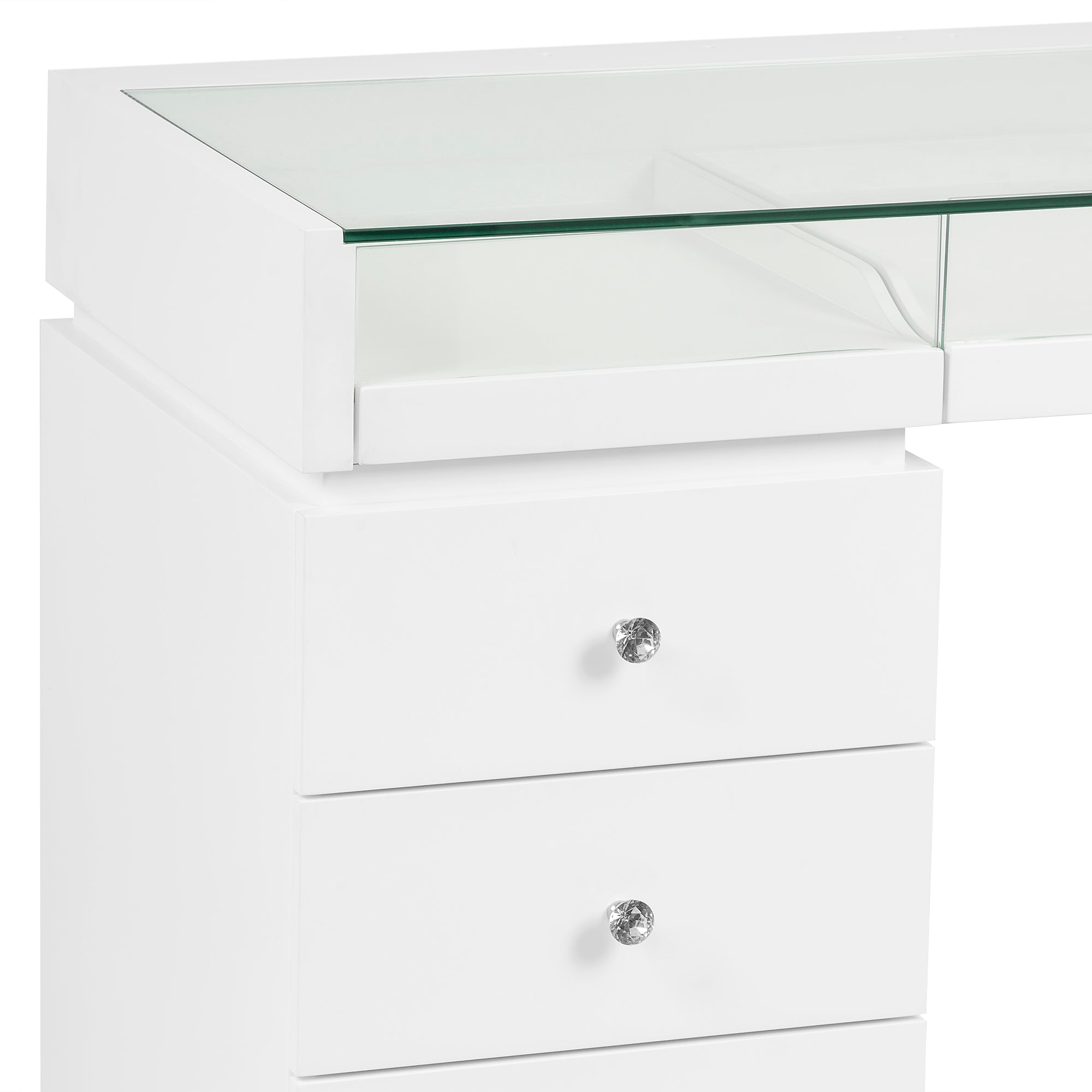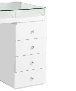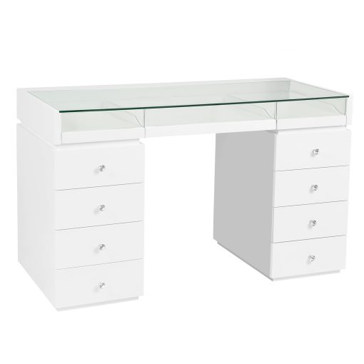 Move out the way, the Bella SlayStation® is here to stay! More modern than ever before, a fresh take on an old Hollywood classic. This bundle features our SlayStation tabletop that includes 3 drawers. The SlayStation features an edge-to-edge clear glass top for you to display your vanity accessories and makeup! Place your chic tabletop on the sturdy SlayStation drawers for the complete look. Features 4 drawers that are highlighted with our Crystal Lux drawer knobs.