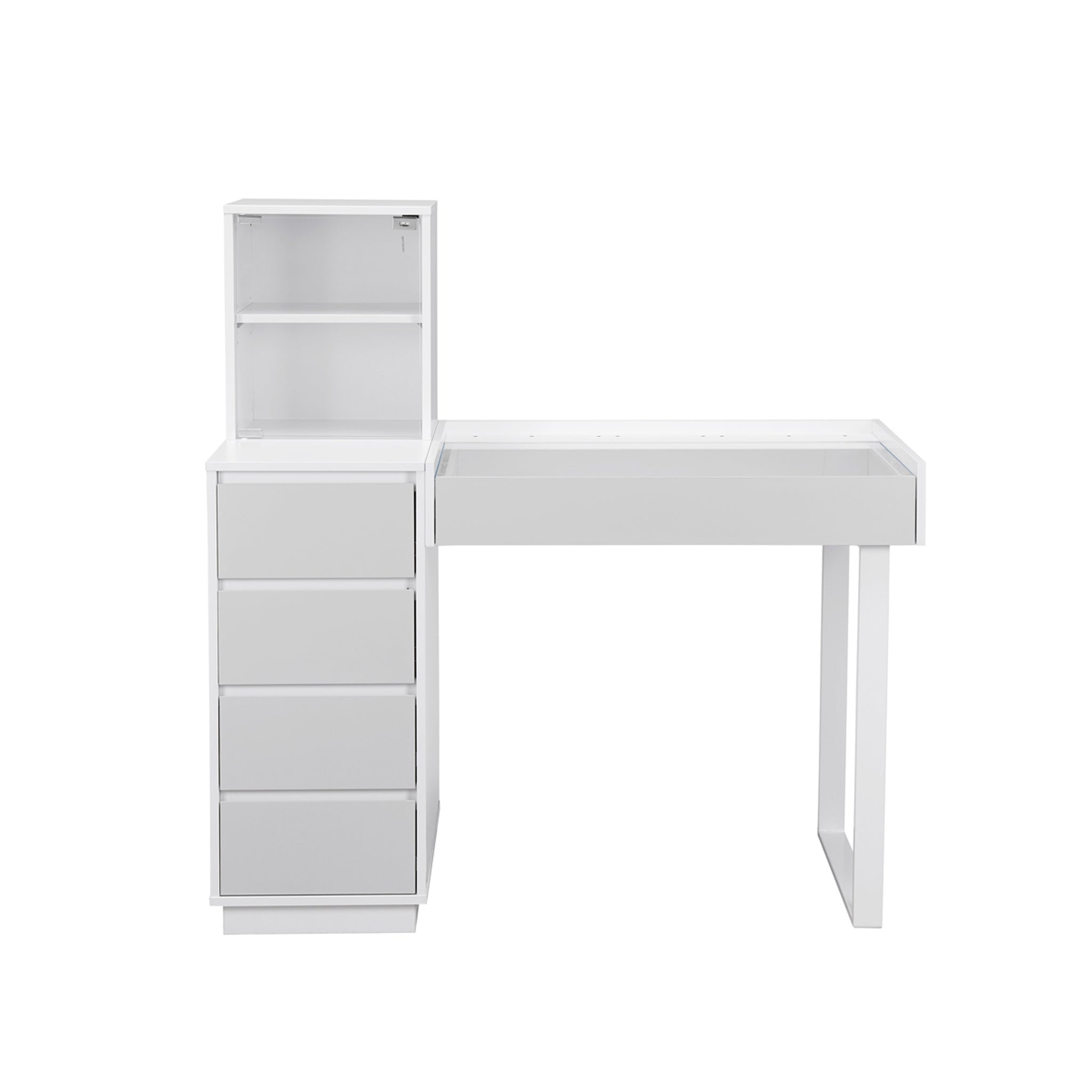 Meet the latest innovation to our oh-so iconic SlayStation® collection. The Duet Vanity Table Desk is a true gem for those that adore when aesthetics and functionality harmonize. If you’re looking for something space-efficient and TONS of storage, you’ve found it!This desk-and-drawer set boasts a thoughtfully designed storage system, complete with the iconic SlayStation® clear-view glass top, endless compartments, capacious drawers, and debuts a unique brand-new tabletop shelf display feature. Whether you’re perfecting your glam, delving into a captivating book, or focused on your studies, this multi-purpose vanity desk is designed to make the most of your limited space.