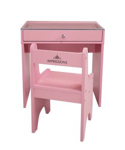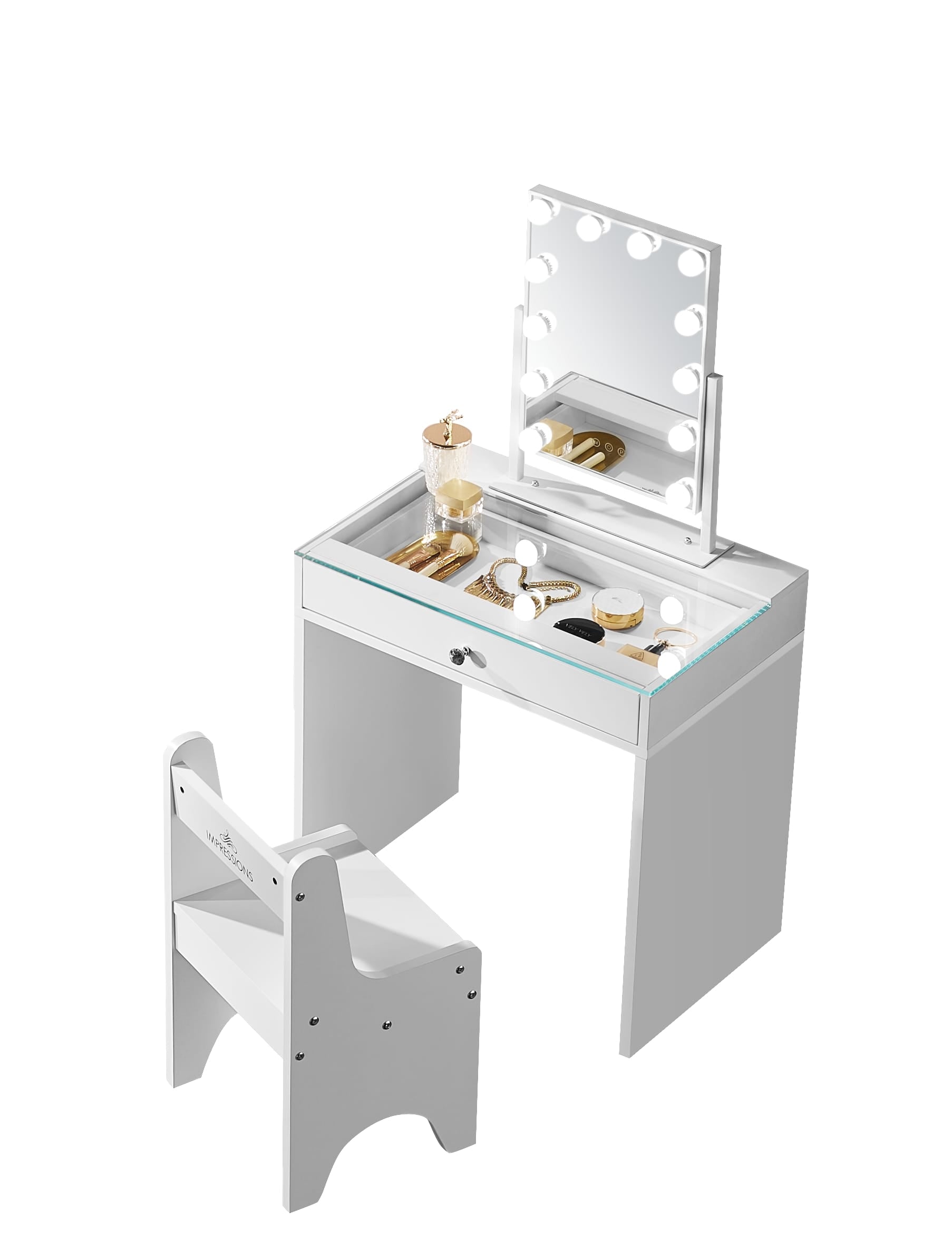 The most adorable vanity makeup set for the little divas, the Little Princess SlayStation bundle! This makeup station features our edge-to-edge tempered clear glass top to showcase their vanity accessories and toys! It is equipped with a large soft-close drawer that is highlighted with our Crystal Lux Drawer Knob. Our sturdy Little Princess vanity chair matches the vanity set perfectly for the little one to get ready in!Mirror Option:The fabulous mirror comes with built-in LED plastic bulbs that are not removable. This vanity mirror features touch-sensitive buttons. Tap the power button to turn the mirror on and off. Hold the dimmer button to adjust the brightness to the perfect lighting. The mirror’s base has pre-drilled holes to seamlessly fit into the Little Princess SlayStation and prevent the mirror from accidentally falling off; screws are included!
