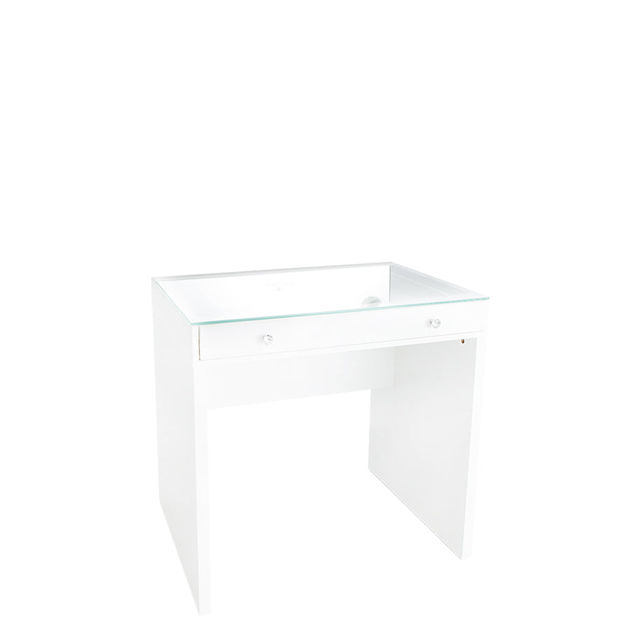 Featuring a flawless clear glass top and a spacious pullout drawer with diamond-style knobs, the SlayStation® Mini Vanity Table is perfect for showcasing your vanity accessories. Its mini size allows this vanity table to fit in most places! Our Hollywood Glow® XL and Hollywood Glow® Plus Vanity Mirrors have pre-drilled mounting holes to seamlessly and securely attach to your SlayStation® Mini.