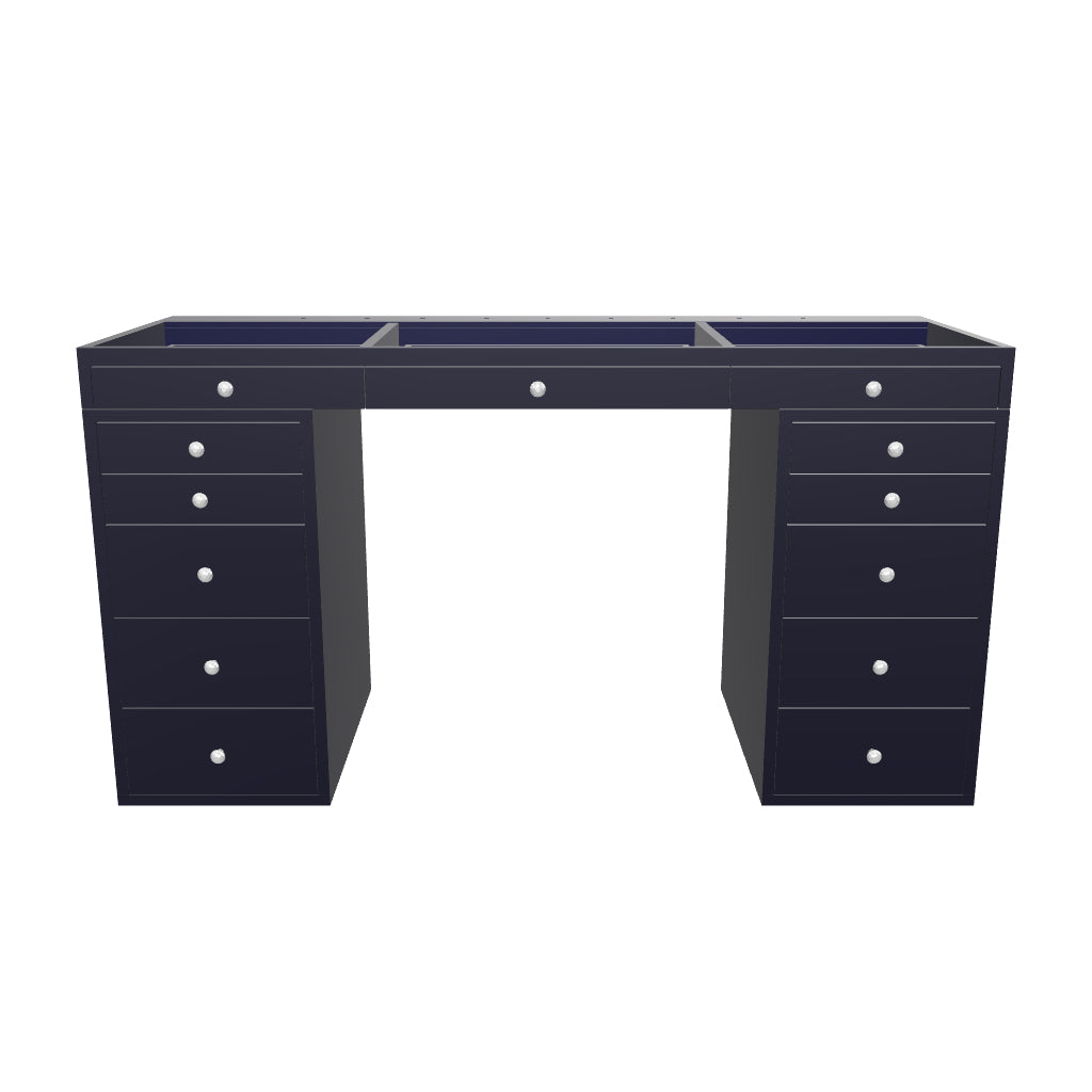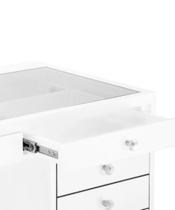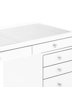 Step up your vanity game with the SlayStation® Pro Premium Tabletop and SlayStation Drawers! This bundle features our SlayStation Pro Premium tabletop that includes 3 drawers highlighted with our crystal lux drawer knobs. This SlayStation features a clear glass top to display your favorite vanity accessories and makeup! Place your chic tabletop on our sturdy SlayStation Premium drawers to complete the look. The drawers are equipped with 5 drawers highlighted with our Crystal Lux Drawer Knobs.