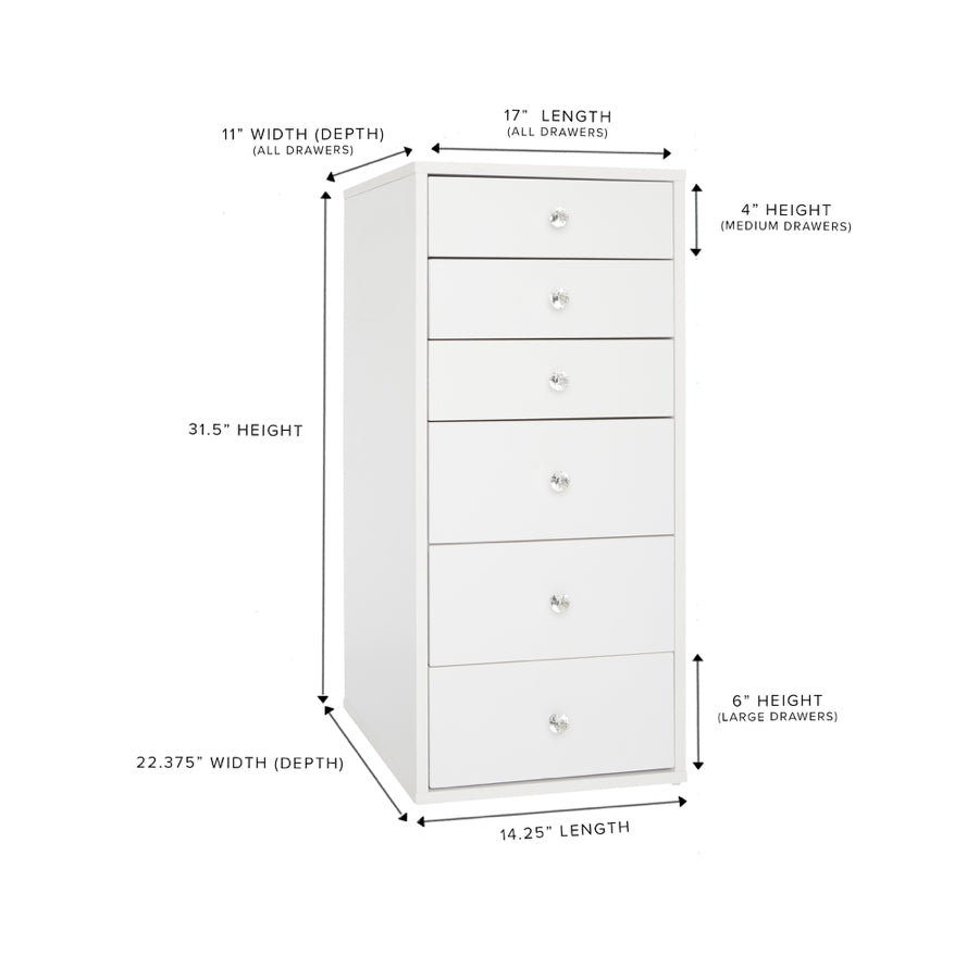 Cue in our signature SlatStation® Vanity Storage Units for that chic look to your vanity set-up! Elegant if you wish to have it as a stand-alone and sturdy to support your Makeup Vanity Tabletop. Features soft-close drawers that are highlighted with our crystal lux drawer knobs.Available in 3 classy colors.