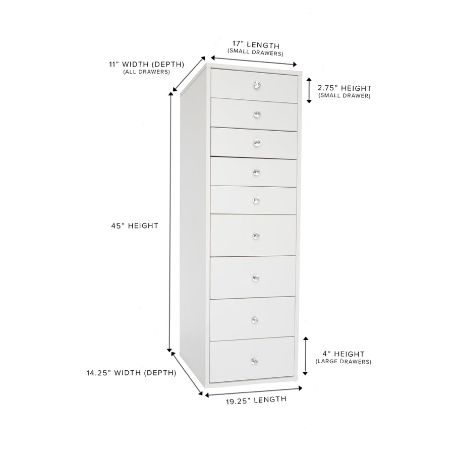 Cue in our signature SlayStation® Vanity Storage Unit for that chic look to your vanity set-up! Elegant if you wish to have it as a stand-alone and sturdy to support your Makeup Vanity Tabletop. Features soft-close drawers that are highlighted with our crystal lux drawer knobs.Available in 3 classy colors.