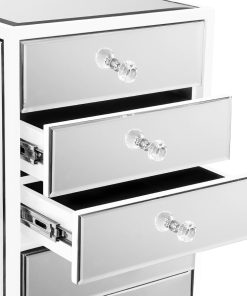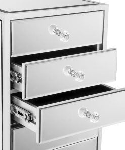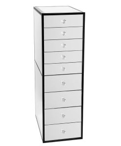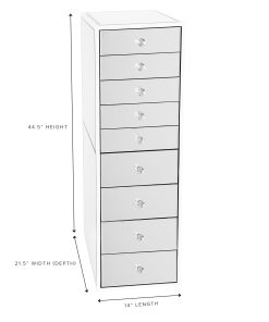 Take your pristine vanity set to the premium level with the Premium Mirrored 9-drawer! This piece will instantly glam up any room. This piece features mirrored side panels, mirrored top, and mirrored drawers. This set comes in two parts: a top piece and a bottom piece. The top piece is equipped with 5 medium soft-close drawers and the bottom piece is equipped with 4 large soft-close drawers. Each drawer provides easy access to your vanity accessories. Our Crystal Lux Drawer Knobs are included for that perfect finishing touch.9 Crystal Lux Drawer Knobs included
