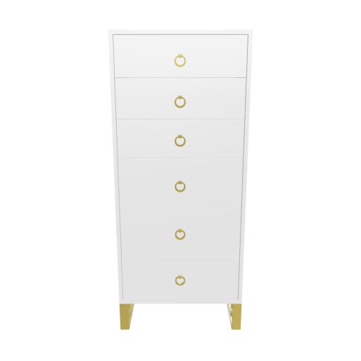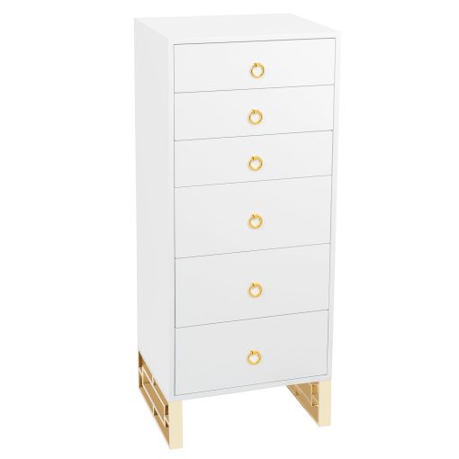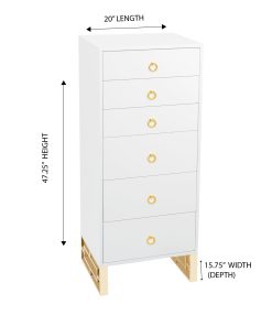Cue in our signature Skylar SlayStation® 6-Drawers Vanity Storage Unit for that chic look to your vanity set-up! Elegant if you wish to have it as a stand-alone and sturdy to support your Makeup Vanity Tabletop. Features soft-close drawers that are highlighted with our beautiful golden drawer knobs.